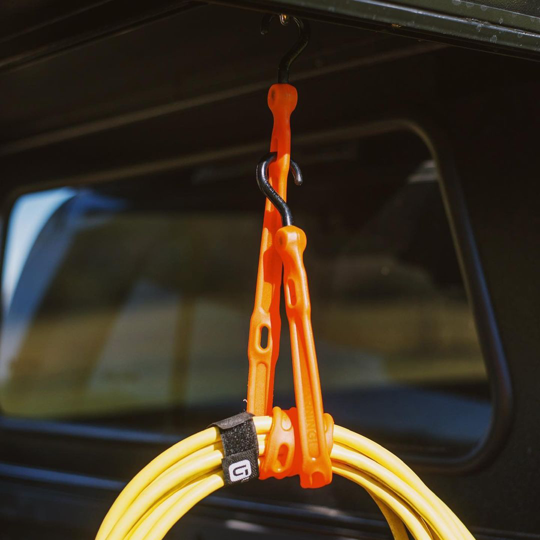 ■6つの穴にフックをかけることで長さ調整が可能なバンジーコード。