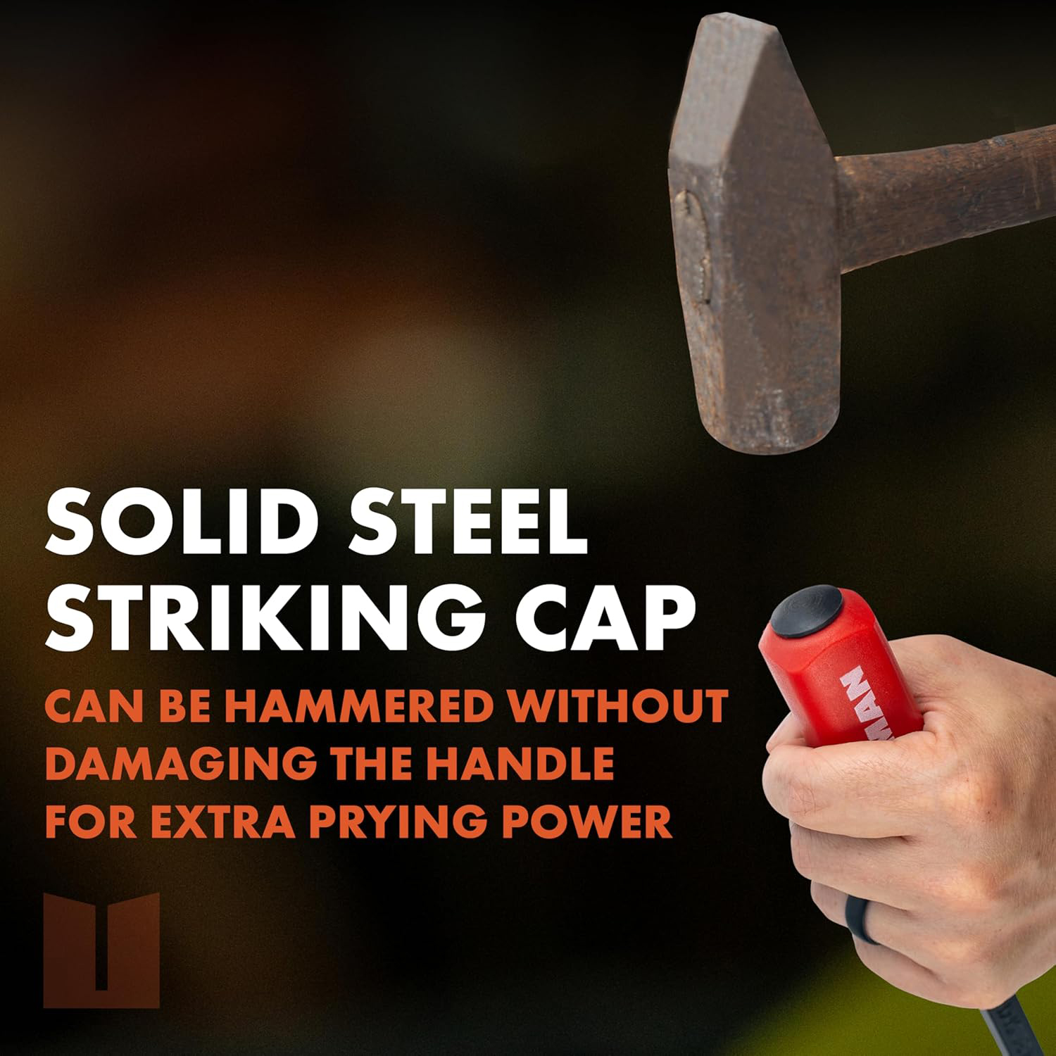 ■グリップエンドのストライキングキャップはバール部から一体型となっており、ハンマーでの打撃も可能。